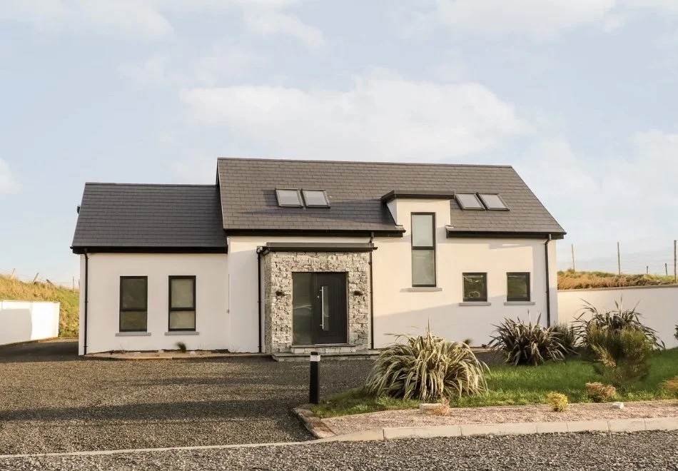 With accommodation for up to 16 guests, the property boasts six luxurious en-suite bedrooms in the main house and two more in the adjacent coach house. Seven bedrooms feature super king-size beds, five of which can be configured as twins for added flexibility. Two bedrooms include indulgent baths—one a stunning copper tub (in the main house) and the other a sleek black design (in the coach house) — while another offers a delightful built-in bunk bed. -